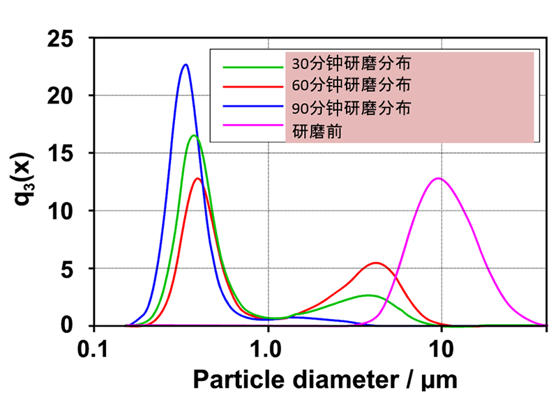 ![]() 相比傳統(tǒng)磨機(jī),即使在相同的平均粒徑,它可以得到集中的粒度分布。 |